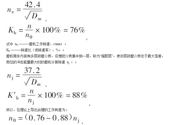 在生產實踐中,影響研磨介質運動狀態的因素很多。因此,要根據實際情況選取適宜的工作轉速。在確定磨機的實際工作轉速時,應該考慮到磨機的規格、生產方式、襯板形式、研磨介質種類、填充率、被磨物料的物理化學性質、入磨物料粒度,要求產品的粉磨細度等的影響。能夠比較全面地反映這些因素的影響,應通過科學實驗來確定磨機的實際工作轉速。