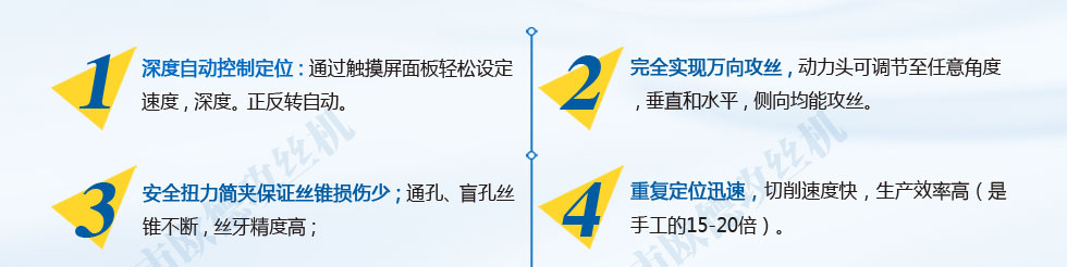 2、智能定深,自動攻下,自動退回。標準牙,非標牙都可以設定深度;